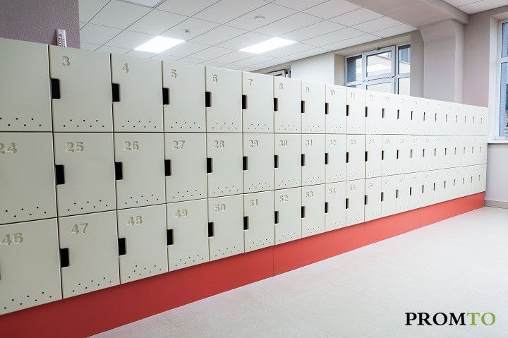 - Персонализация: индивидуальные шкафчики с электронными или механическими замками, отдельные зоны для обуви, продуманная вентиляция.
